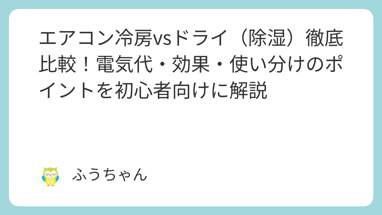 また、冷房とドライは使用目的が異なるため、単純に「どちらが安い」とは言い切れません。大切なのは、その時の気温や湿度に合わせて適切に使い分けることです。