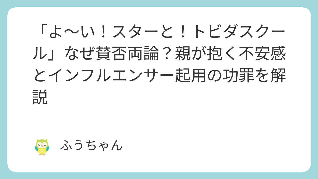 2026年4月から日曜朝8時という子ども番組の重要な時間帯に登場した『よ〜い!スターと!トビダスクール』(略称:トビスク)。原宿系インフルエンサーを起用した新しい試みの子ども番組として注目を集めていますが、SNS上では賛否両論の声が上がっています。