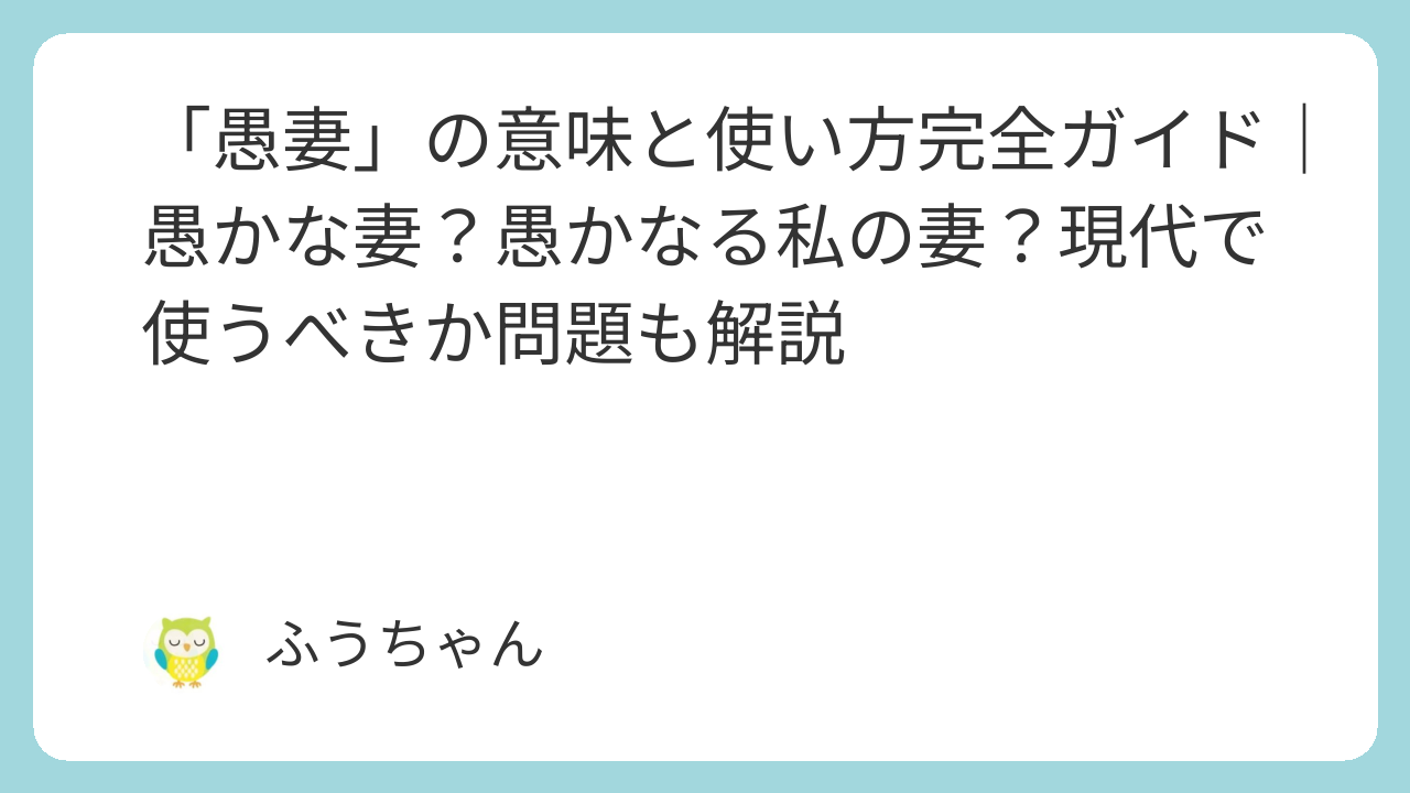 しかし、字面から「愚かな妻」と誤解されやすいこと、そして現代の個人尊重・男女平等の価値観と伝統的な敬語表現とのギャップから、使用には慎重さが求められます。