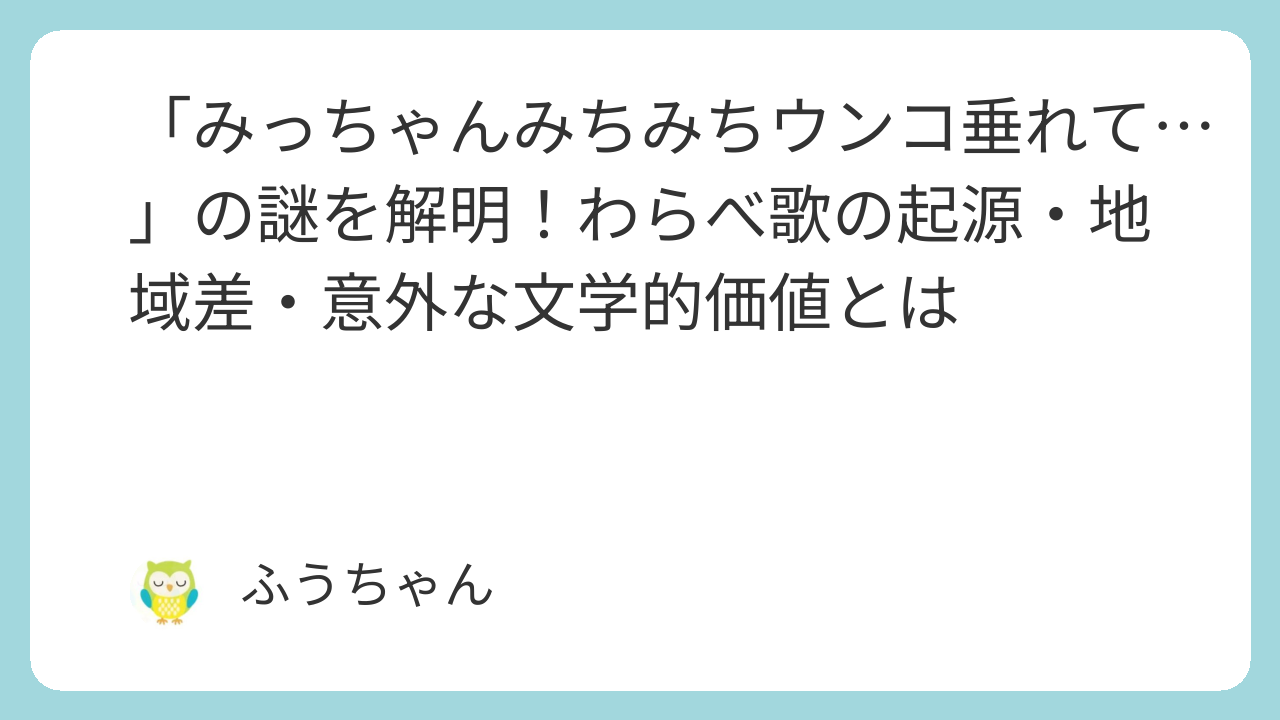 「みっちゃんみちみちウンコ垂れて…」の謎を解明!わらべ歌の起源・地域差・意外な文学的価値とは