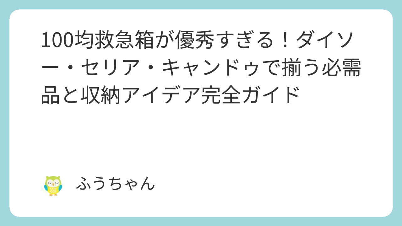 この記事では、ダイソー・セリア・キャンドゥで購入できる救急箱の特徴から、中に入れるべき必需品、さらに使いやすい収納アイデアまで徹底解説します。100均アイテムだけで、家族を守る頼れる救急箱を完成させましょう。