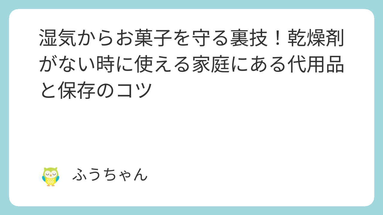 特に梅雨時期や湿度の高い日には、これらの方法を活用して、大切なお菓子を湿気から守ってみてください。