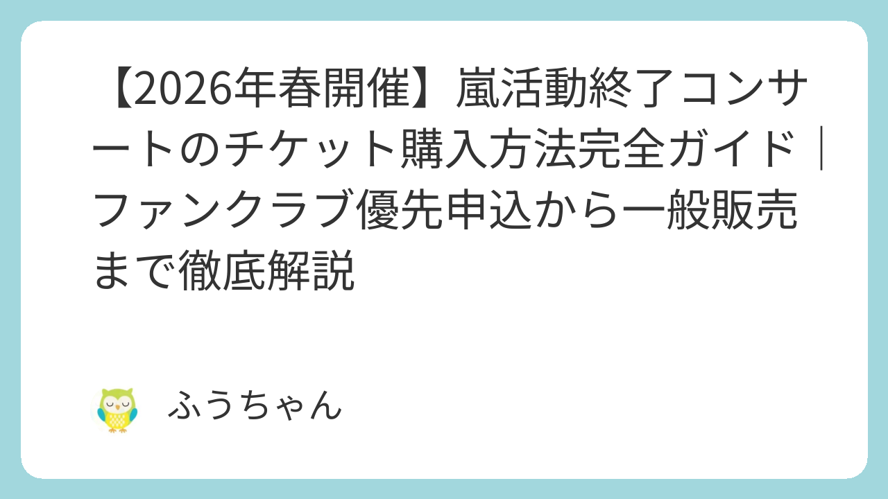 この記事では、嵐の活動終了コンサートのチケット購入方法について、初心者の方にも分かりやすく解説します。ファンクラブ優先申込から一般販売まで、確実にチケットを手に入れるための方法を詳しくご紹介しますので、ぜひ最後までお読みください。