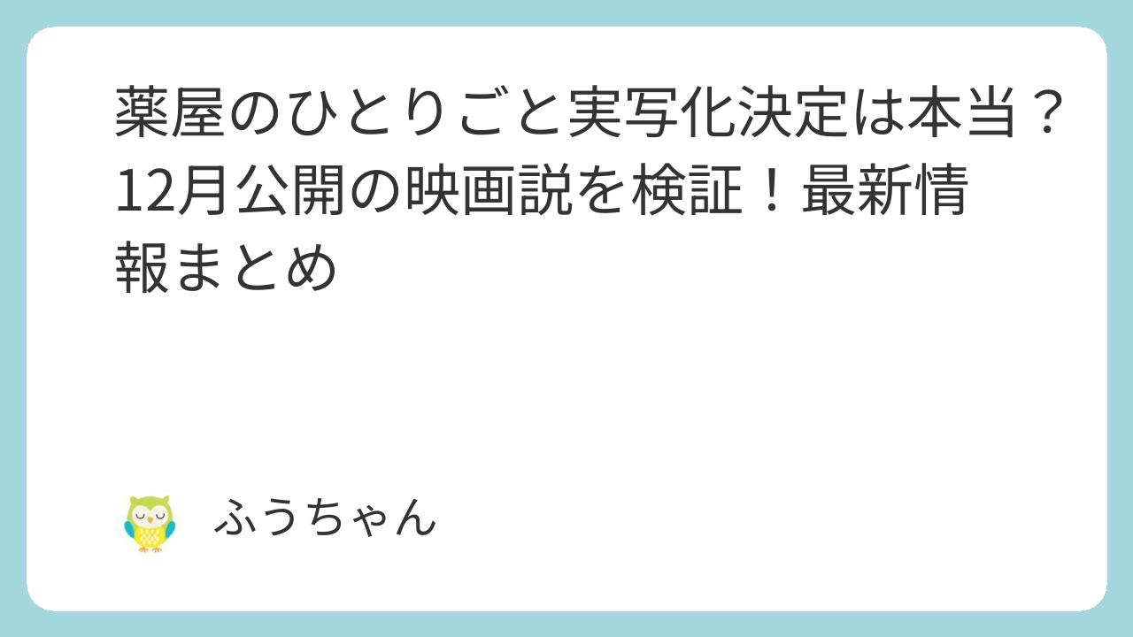 この記事では、薬屋のひとりごとの実写化に関する正確な情報をお伝えします。噂に惑わされず、信頼できる情報源を確認することで、ファンとして適切な期待を持ちましょう。