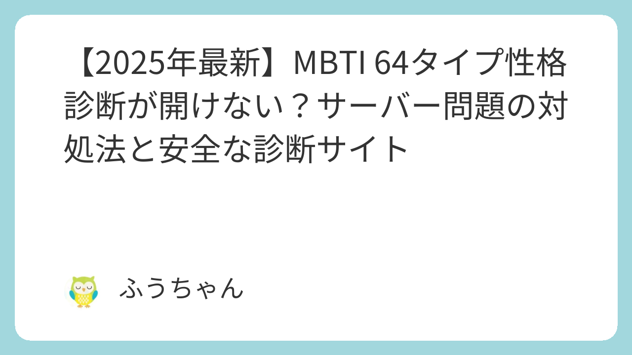 この記事では、64タイプ診断サイトで接続問題が起きた際の対処法と、診断の特徴や安全な利用方法について詳しく解説していきます。万が一また接続できなくなった時に備えて、ぜひ参考にしてください。