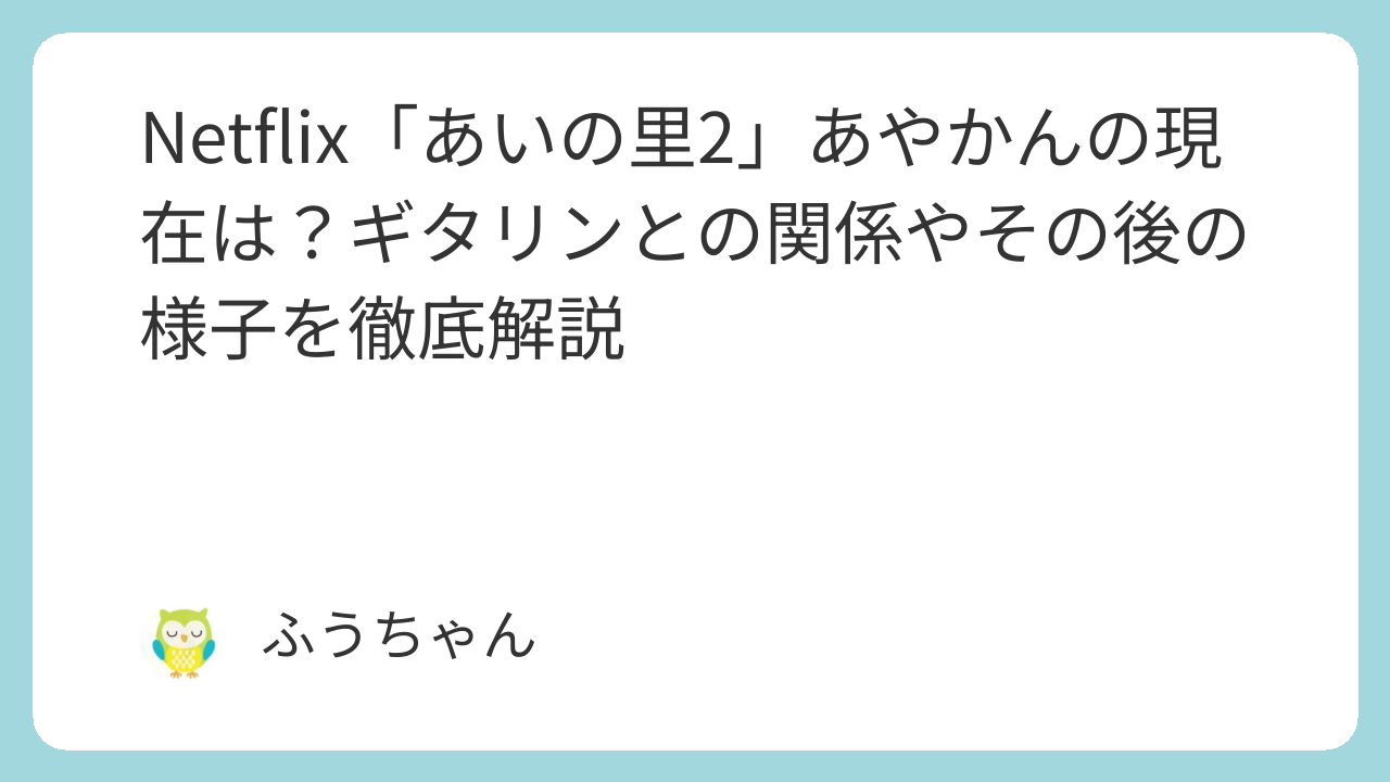 Netflix「あいの里2」あやかんの現在は?ギタリンとの関係やその後の様子を徹底解説