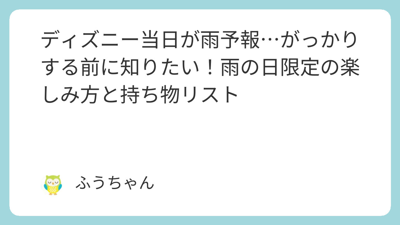 万全の準備をして、雨の日ならではのディズニーを思い切り楽しんでください。きっと素敵な思い出になりますよ。