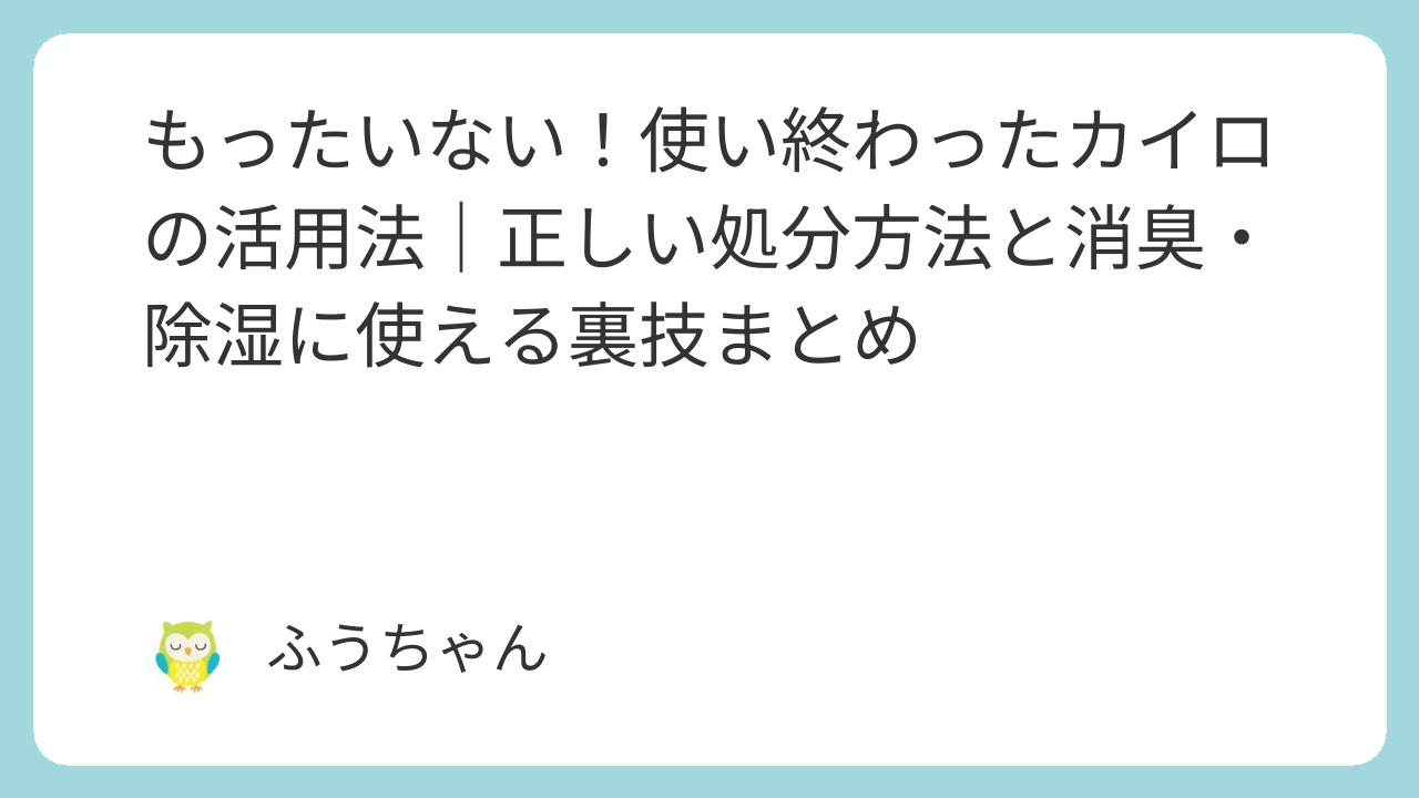 この記事では、カイロの正しい処分方法から、捨てる前に試したい再利用アイデアまで、詳しくご紹介します。毎日使うものだからこそ、ちょっとした工夫でエコな生活を実現してみませんか?