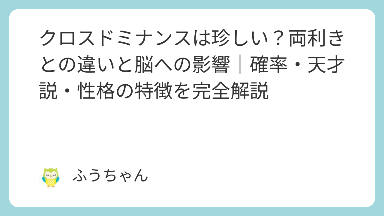 ただし、矯正や生活環境の影響で後天的にクロスドミナンスになるという説は、推測や体験談レベルのものが多く、明確な研究コンセンサスがあるわけではありません。
