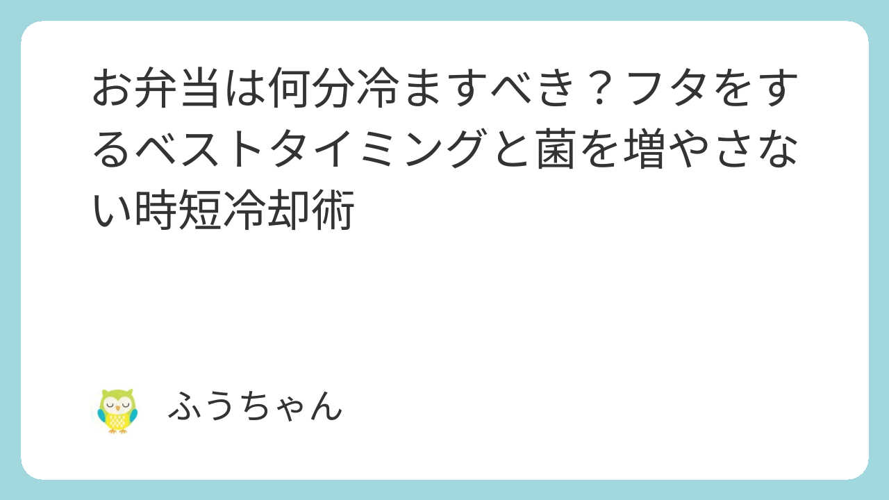 「お弁当って、どのくらい冷ましてからフタをすればいいの?」 「忙しい朝、冷ます時間が取れない…」 「温かいままフタをしちゃダメって本当?」