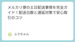 雑学 メルカリ便の土日配送事情を完全ガイド!配送日数と遅延対策で安心取引のコツ メルカリで取引をする際に気になるのが、配送のスピードと土日の配送状況ですよね。「土日に発送したら遅れるの?」「週末でも荷物は届くの?」そんな疑問をお持ちの方も多いはず。この記事では、メルカリ便の土日配送事情を徹底解説し、配送遅延を避ける方法... 雑学