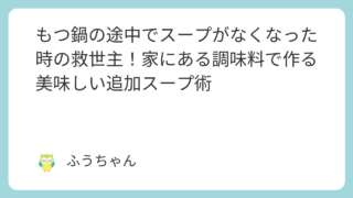 雑学 もつ鍋の途中でスープがなくなった時の救世主!家にある調味料で作る美味しい追加スープ術 もつ鍋を楽しんでいる最中に「あれ?スープが足りない!」という経験はありませんか?お店で買ったもつ鍋セットや、手作りのもつ鍋でも、途中でスープが少なくなってしまうことは珍しくありません。そんな時に慌てて買い物に行く必要はありません。家にある基... 雑学
